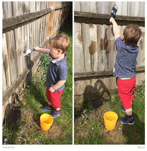 Kint tüsténkedsz a kertben és a gyerkőc is szorgoskodni akar? Adj neki egy vödör vizet és egy ecsetet, hogy "fesse" le a kerítést - így lefoglalja magát egy kis időre, és attól sem kell tartanod, ha összemaszatolja magát.
