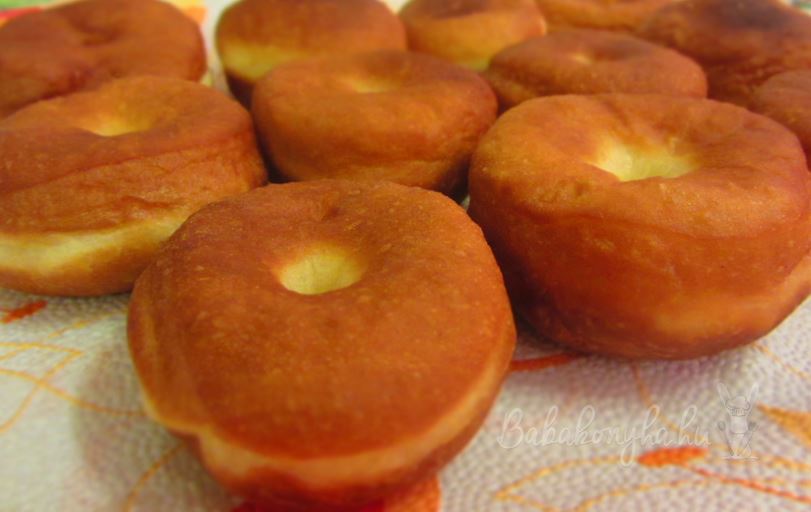 Majd jön a sütés, sajnos nem ússzuk meg a zsiradékot, de aki bírja, illetve akinél bírja a picur az egészségesebb változatot, az használja nyugodtan (pl. kókuszzsír). A fánkokat középforró bő zsiradékban, egyenletes tűzön süssük ki! Egyszerre ne tegyünk túl sok darabot az olajba, mert akkor nem lesz helye a növekedésre. Amikor beleraktuk a tésztát a serpenyőbe, fedjük le, majd 1-2 perc múlva fordítsuk át, ekkor már süthetjük fedő nélkül tovább. Szűrőkanállal vagy fogóval szedjük ki a fánkokat konyhai papírtörlőre, jól itassuk le a zsiradékot.