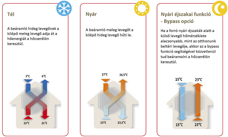 Egy szellőztetőrendszer lehetővé teszi a pontosan szabályozott légcserét anélkül, hogy ablakot kellene nyitni. A hőcserélős szellőztetőrendszerek pedig nem csak a külső levegőben található szennyeződéseket szűrik ki, de az elhasznált levegő hőjét is újrahasznosítják. Ez télen például azt jelenti, hogy a befújt friss levegőt a hőcserélő melegíti elő, így az egyébként csak az utcát fűtő hulladékhőnek akár 90 százaléka újrahasznosul.