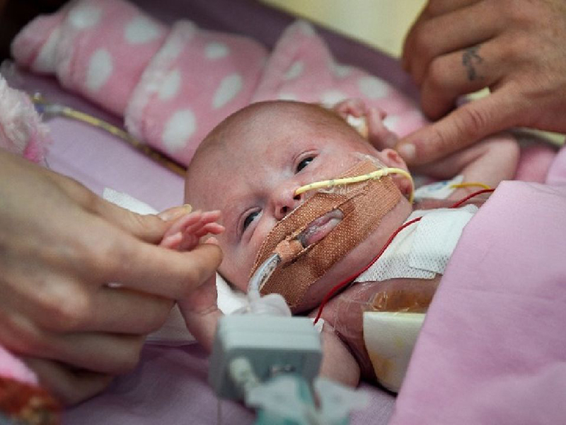 Túlélte a műtétet és "jól van" az a háromhetes kislány, aki mellkasán kívül dobogó szívvel született. Eddig 3 operációt hajtottak végre rajta, és még nincs túl a nehezén.