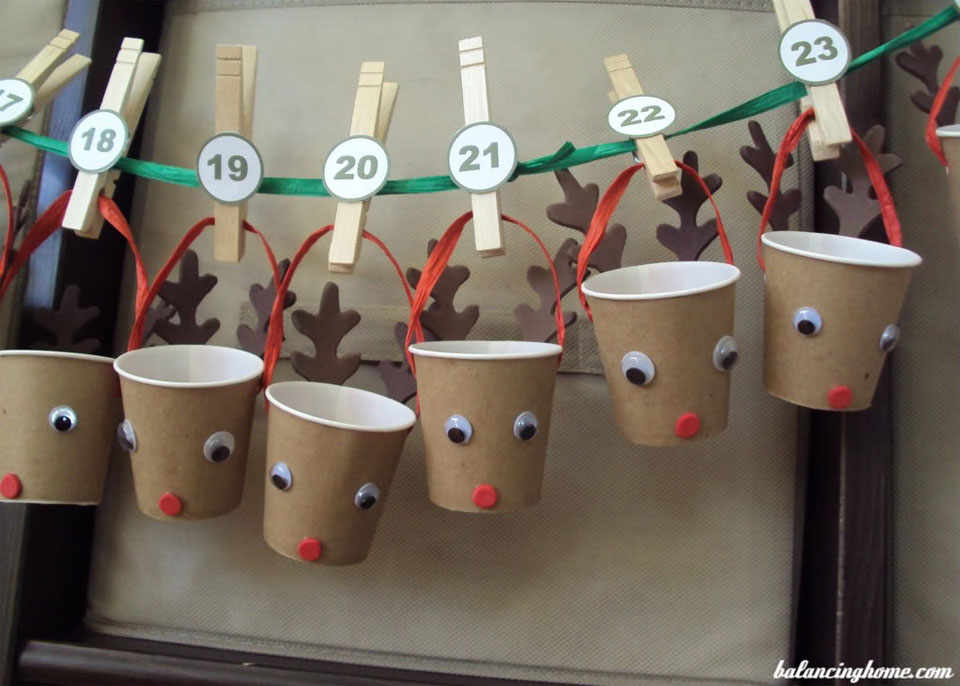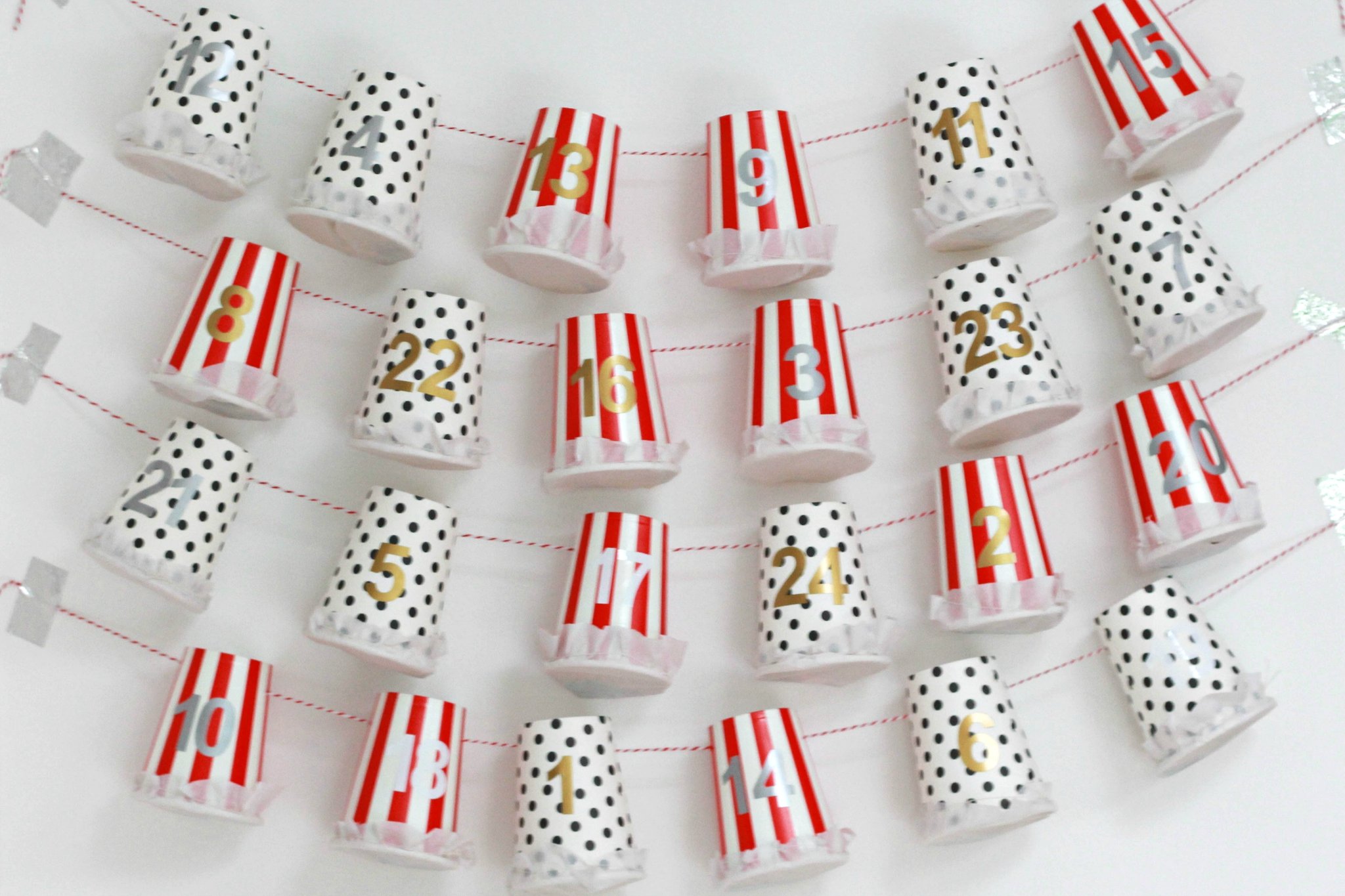 12. Adventi naptár papírpoharakból, felfűzve