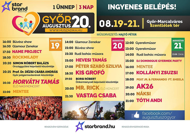 Győrött az egész hosszú hétvégére kínálnak ingyenes programokat, melyek között lesz koncert, bűvész show, bohócműsor, gyerekműsorok és még sok minden más.