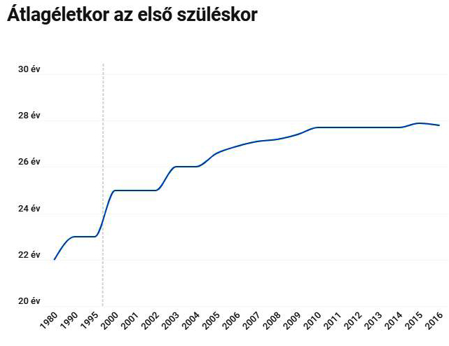 Ugyanakkor 2004 óta megfigyelhető tendencia, hogy Budapesten a nők a harmadik X betöltése után, jellemzően 30-34 évesen vállalják első gyermeküket. Sőt, Budapest mellett a fővárosi agglomerációt adó Pest megyében is leginkább ez a jellemző: 2000 és 2009 között Budapesten kétszeresére emelkedett a 35–39 évesek gyermekvállalása, és háromszorosára a 40 éven felüli nőké. 2017-ben Budapesten 409 negyven feletti nő hozta világra első gyermekét.