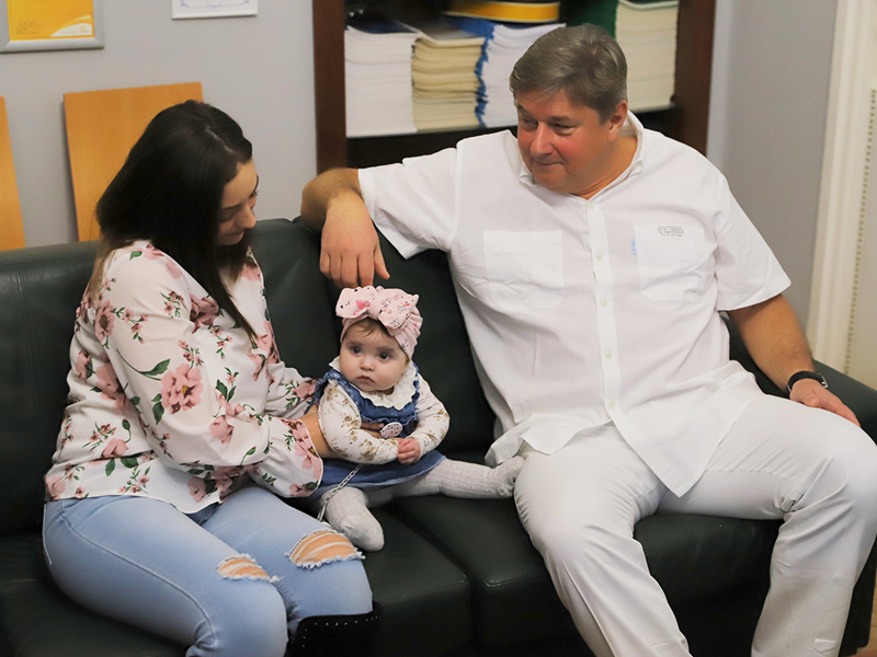 A kislány az anyukájával és Rovó László professzorral - fotó: Bobkó Anna