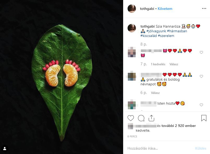 Az énekesnő és párja a mai Story magazinnak számoltak be először az örömhírről, de december 12-én, csütörtökön (amúgy éppen Gabriella neve napján) egy aranyos poszt is kikerült Tóth Gabi oldalára ezzel kapcsolatban.