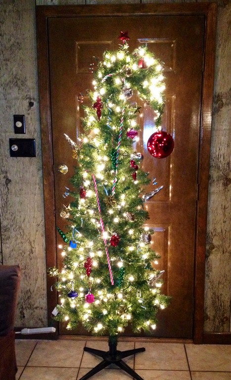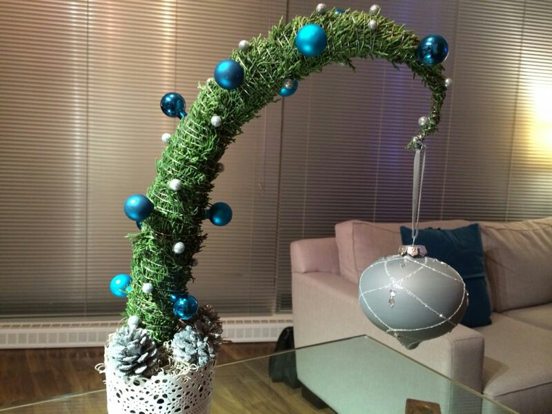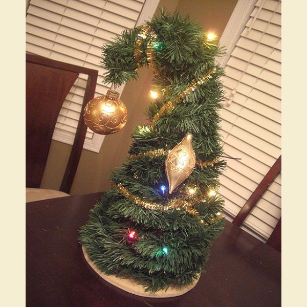 Ennek a fának vállfadrót a váza, 1 égősorral és zöld fenyő-girlanddal lett körbetekerve és csupán pár karácsonyi dísz ékesíti. Ripsz-ropsz elkészül.