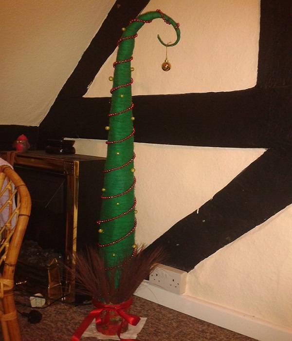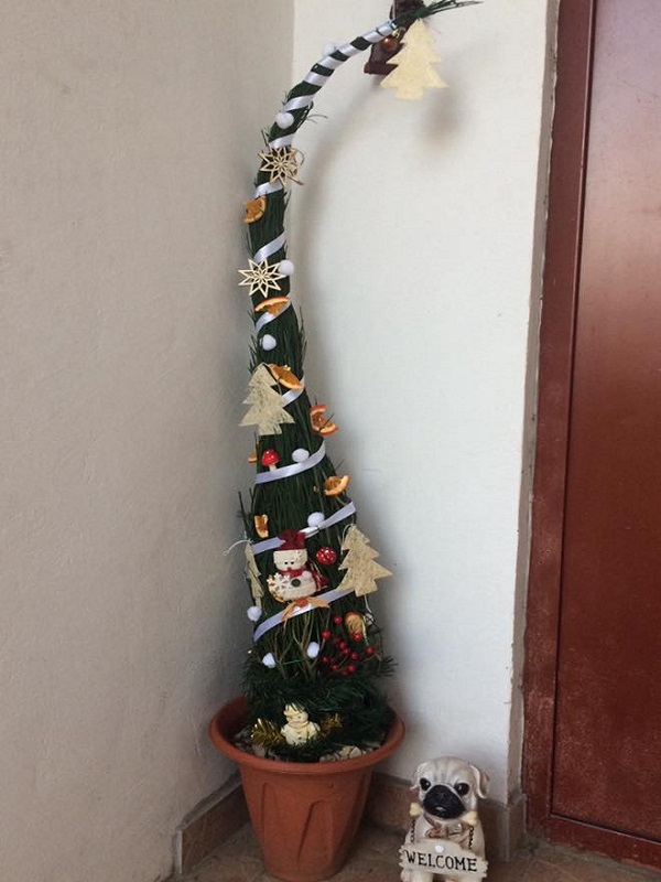 Igazán hangulatossá teszi a szobát esténként egy égőkkel gazdagon díszített karácsonyi dekoráció. Ez a grincsfa változat egyébként egy picit a klasszikus karácsonyfa és a sipkás változat keveréke.
