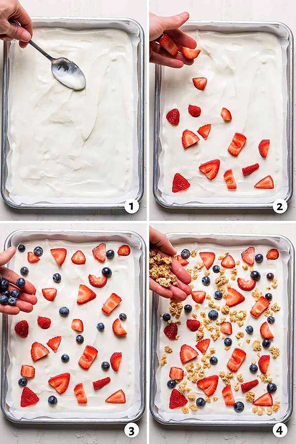1. A joghurtot keverd össze a az ízesítőkkel, majd simítsd egy zsírpapírral kibélelt tepsibe