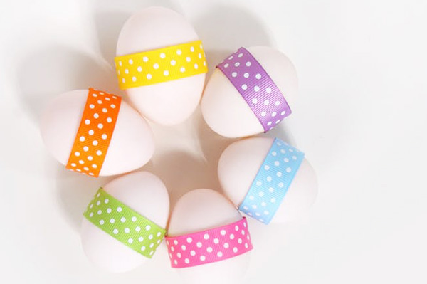 Ha akarod, még festegetned sem kell: a főtt tojásokat egyszerűen csomagold be színes tüllanyagba (például sárgába), majd díszítsd szalagokkal. Az is szolid és dekoratív megoldás, ha a tojásokat egy színes szalaggal kötöd át (ehhez a megoldáshoz fehér héjú tojást érdemes választanod).