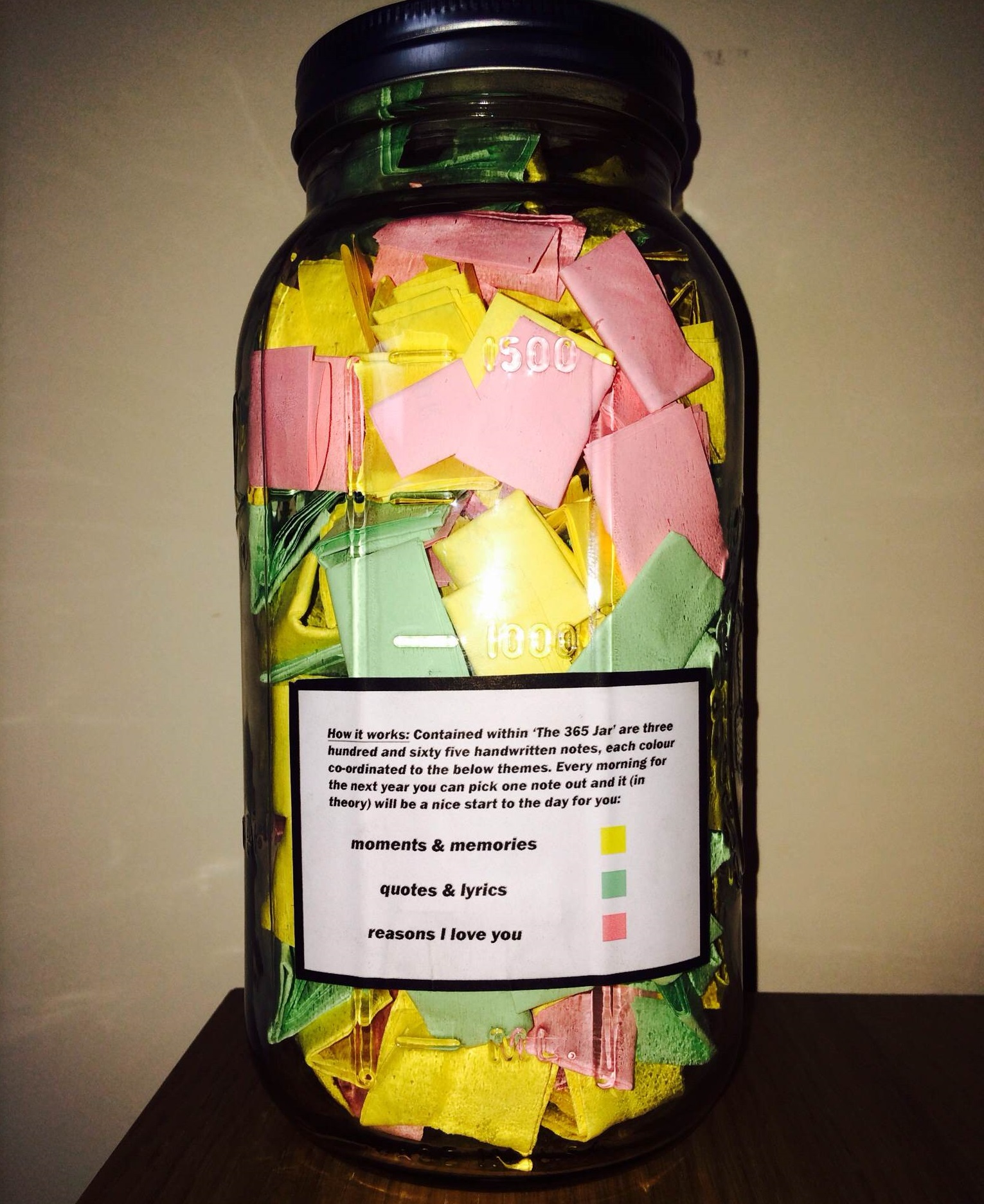 13. Szerelmes üzenetek a barátnőnek egy palackban, egy egész évre vonatkozóan, minden napra 1-1. Három különböző színű cetlin szerepelnek az üzenetek, s a palackon elhelyezve a használati utasítás is: Minden napra 1 cetli, hogy jól induljon a napod, a következőkből lehet választani: Sárga - Emlékek; Rózsaszín - Okok, amiért szeretlek; Zöld - Dalok, idézetek.