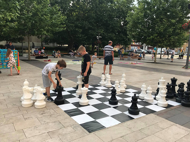 Az óriáshomokozó mellett óriás sakktáblával, pingpongasztallal, csocsóval, vizes mókával, és még több tucatnyi színes játékkal várják a látogatókat - a vizes játékok miatt érdemes váltóruhát is vinni. Mindemellett pedig a jelenlévők részt vehetnek az aerobik-órákon és a kézműves foglalkozásokon is.