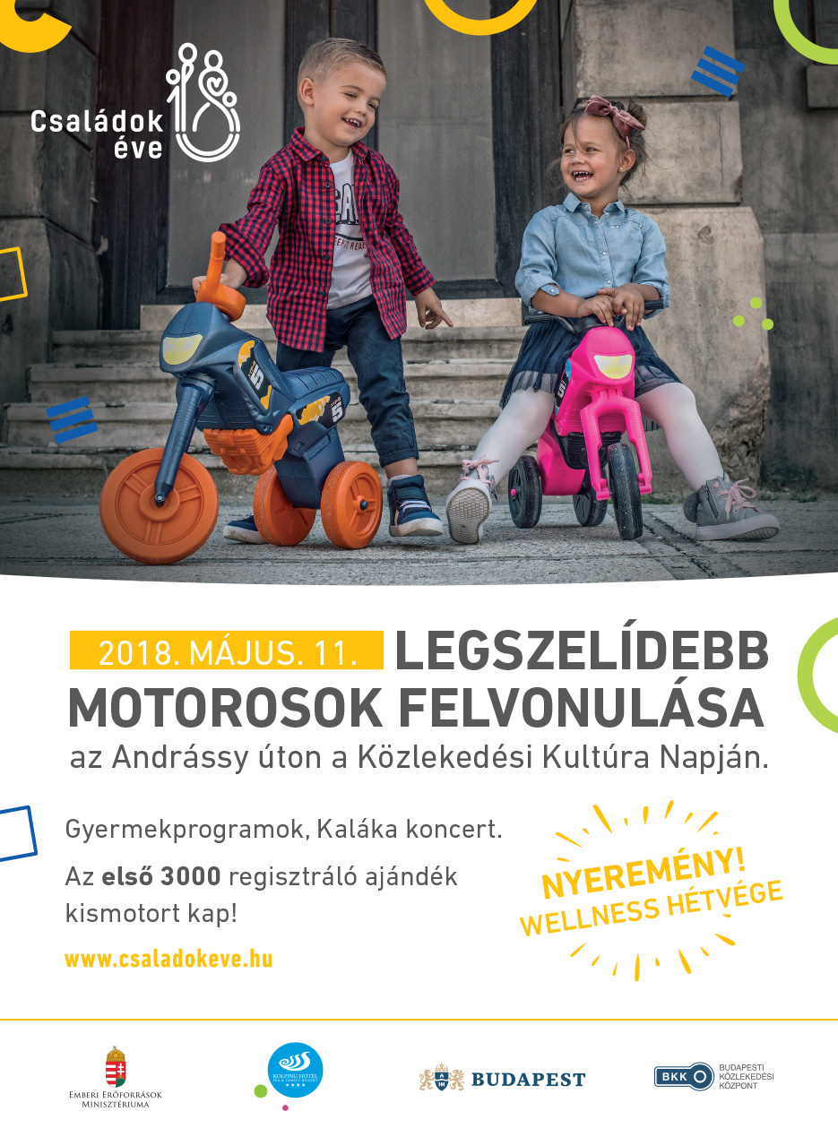 2018 a családok éve - ez többek között azt is jelenti, hogy január elseje óta nagyon sok programot kínálnak az egészen piciknek, illetve a szülőknek, nagyszülőknek, dédnagyszülőknek. Ennek egyik kiemelkedő eseménye a Legszelídebb Motorosok Felvonulása, amelyre meglepetéssel várják a családokat. A legszelídebb motorosok felvonulása Budapesten 2018