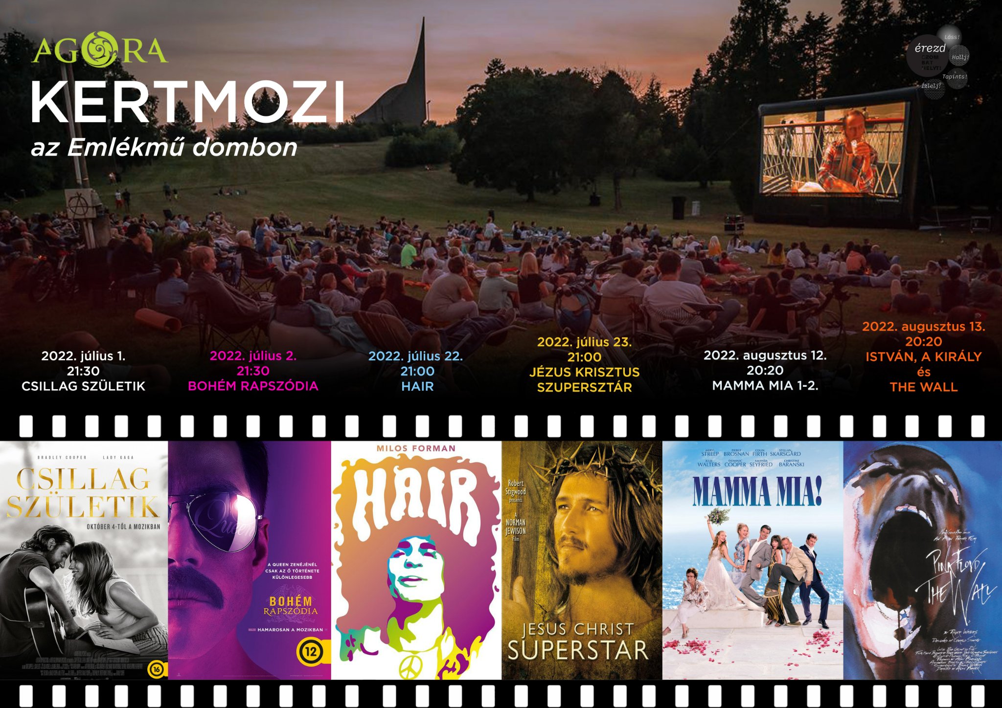 A vetítések este 20:00 órakor kezdődnek, pokrócot, ételt-italt mindenki vigyen magával.
