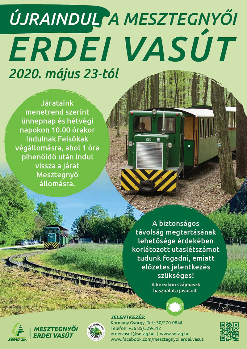 Május 23-án üzembe áll a 9 kilométeres pályán haladó Mesztegnyői Erdei Vasút, a továbbra is fennálló járványhelyzet miatt azonban az általános óvintézkedéseket kirándulás közben is be kell tartani.