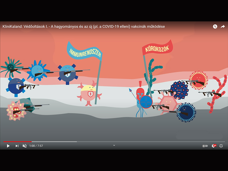 A KliniKaland nevet viselő sorozat első része a védőoltásokkal foglalkozik, melyben a hagyományos és az új - például a COVID-19 elleni - vakcinák működési elvét ismerheted meg. A kisfilm közérthetően és humorosan, de szakmailag hitelesen mutatja be, hogyan alakul ki a védettség az oltóanyag hatására.
