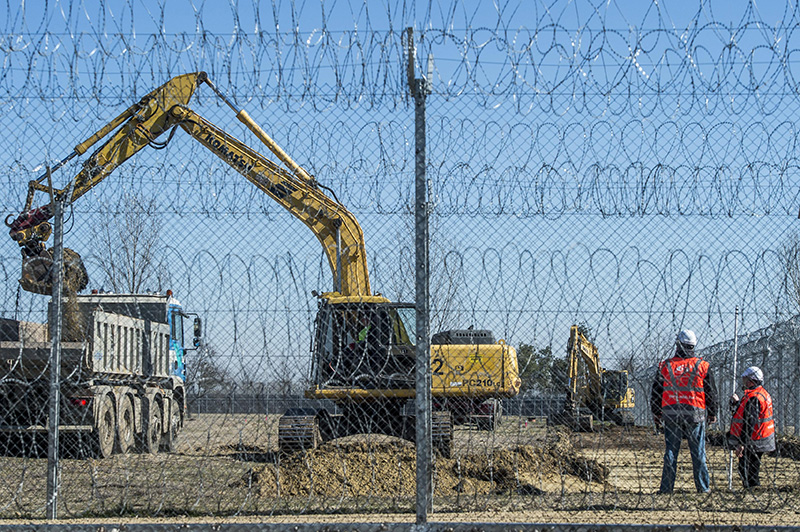 Kiskunhalas, 2020. március 16. Munkagépek dolgoznak a 150 páciens befogadására alkalmas járványügyi mobil konténerkórház építési munkálatainak előkészítésén a Kiskunhalasi Országos Büntetés-végrehajtási Intézet területén 2020. március 16-án. A kórház a börtöntől távolabb, elkülönített telekrészen működik majd.