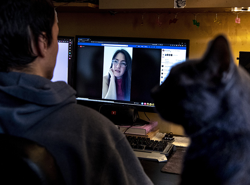 Budapest, 2020. március 16. Egy budapesti gimnazista az otthonából, internetkapcsolaton keresztül figyeli osztályfőnökének, Kerényi Katának, a Zöld Kakas Líceum tanárának online tartott óráját 2020. március 16-án. Az új koronavírus-járvány terjedésének megfékezése érdekében mától a tanulók nem látogathatják az oktatási intézményeket, és elkezdődik a digitális tanrendre való átállás.