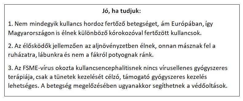 Magyarországon az FSME-vírus okozta agyvelőgyulladás és a bakteriális Lyme-kór a két leggyakoribb, közönséges kullancs által terjesztett betegség.