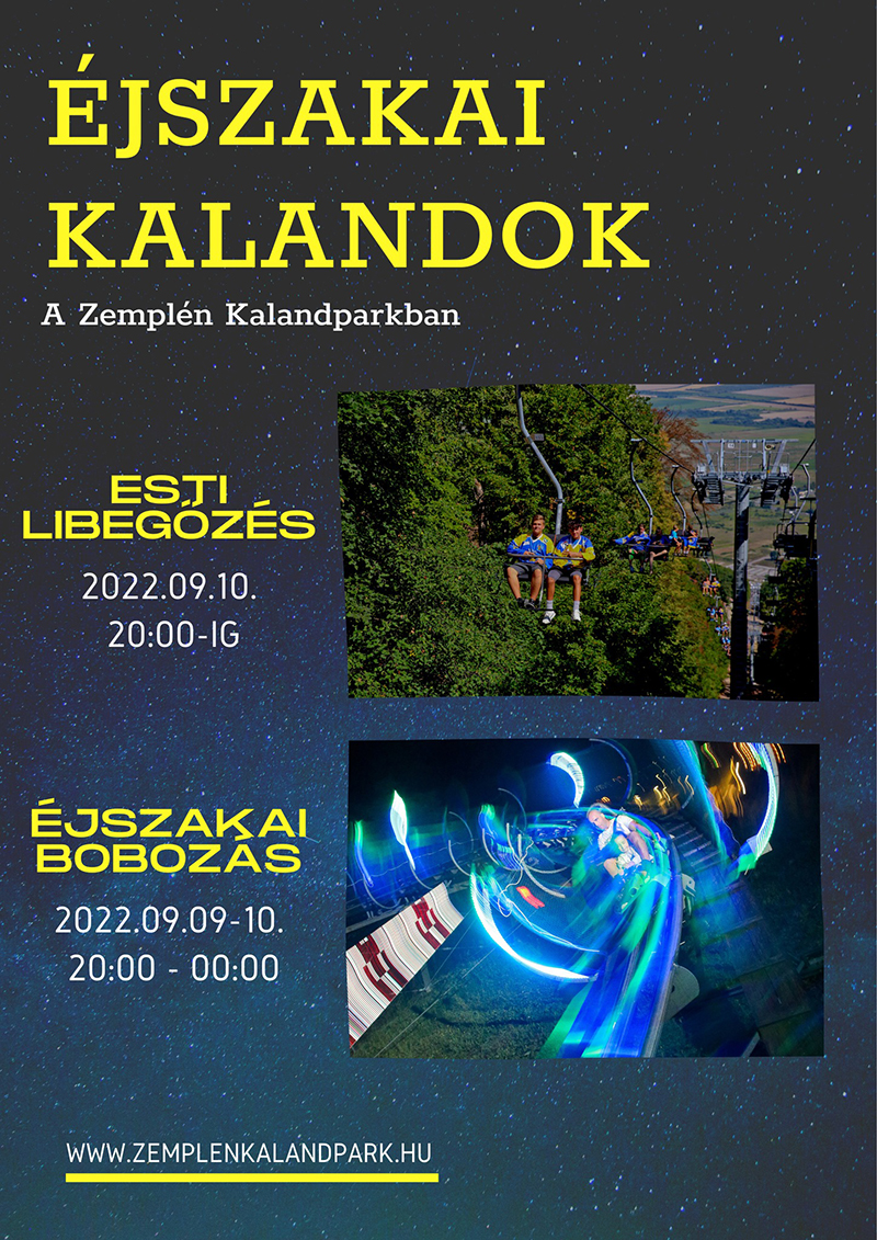 Sátoraljaújhelyen, a Zemplén Kalandparkban befejeződött az átépítés. Mint a honlapon írják, a Magas-hegyi libegő elindult, a Szár-hegyi libegő és a lombkorona sétány (Sky-walk sétány) építésének munkálatai még zajlanak. A Libegők éjszakája programról elég szűkszavúan, egy plakáttal tájékoztatják az érdeklődőket.