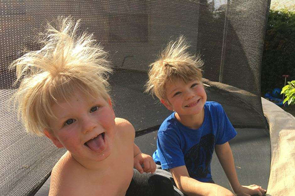 Chase és Phoenix, a két autista kisfiú trambulinozás közben