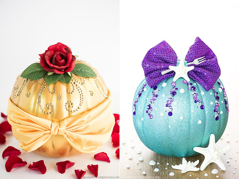 A gyermeked kedvenc hercegnőjét idézheted meg a tökfestéssel: az első tök Belle-t idézi, míg a második a kis hableányt.