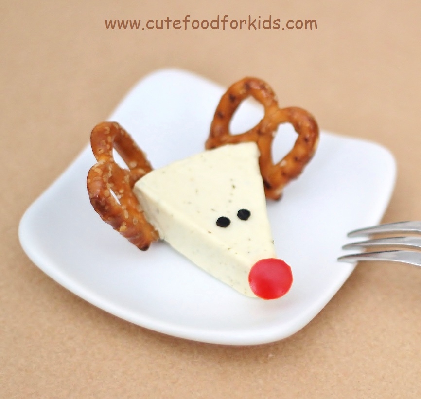 Egyszerű ötlet a sajt vicces tálalására. Az orr bármilyen piros idénygyümölcs, télen aszaltgyümölcs lehet.
