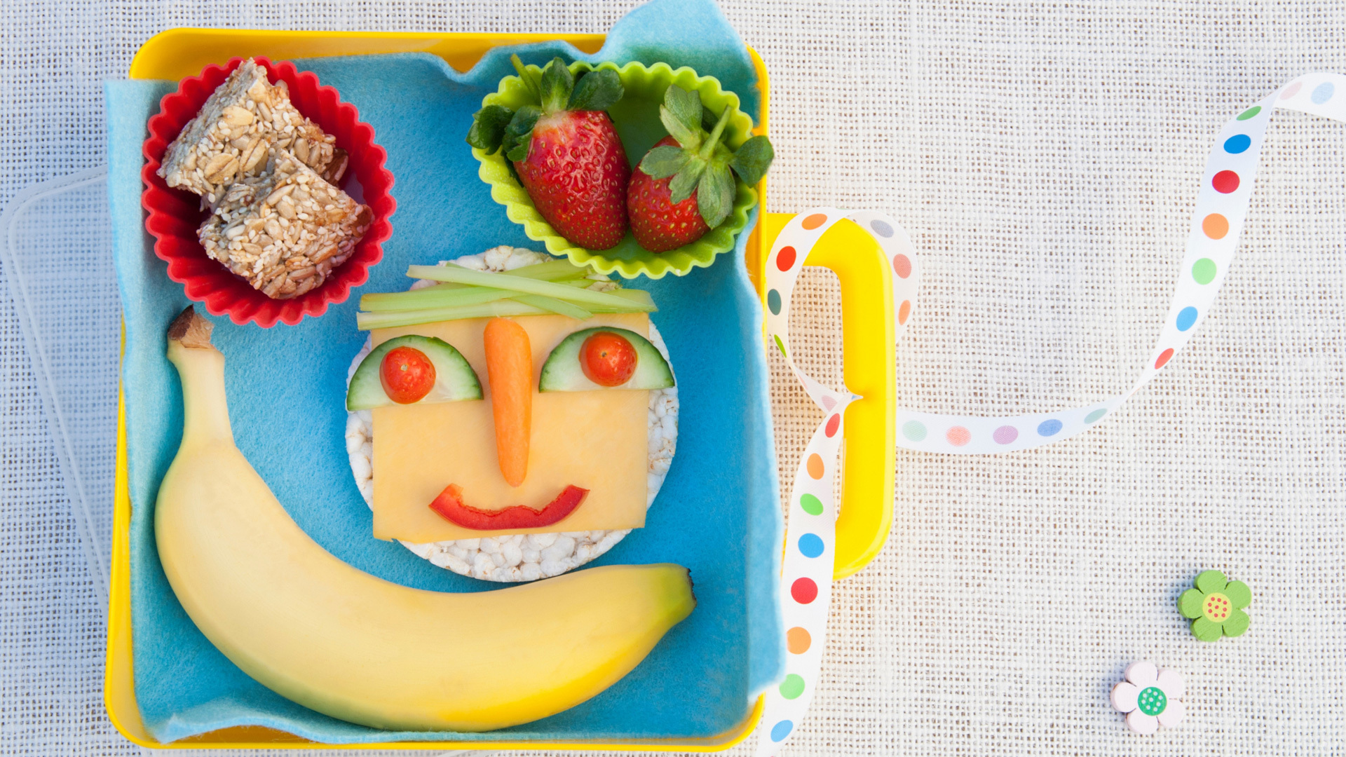 Látványos uzsonnafalat gyümölccsel, amivel nagy sikert lehet aratni válogatós gyerekek körében is.